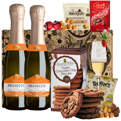 ❤️ 2 x Prosecco wine bottle 20cl x 1 Lindt Lindor truffles box x 1Gormet Popcorn x1 Chocolate Truffles x 1 Chunky Grandma Wilds Biscuits ❤️ Pres...