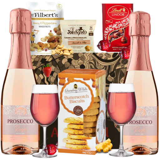 ❤️ 2 x Rose Prosecco bottle 20cl X 1 Lindt Lindor truffles box x 1 Goumet popcorn x 1Chocolate Truffles x 1 Premium Biscuits. ❤️ Presented in a ...